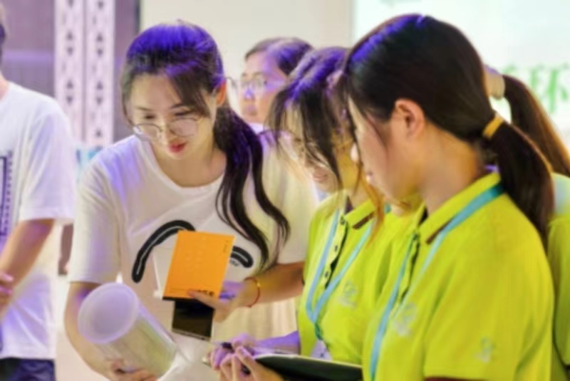 图 实践队队员查看经资源化处理后的塑料颗粒