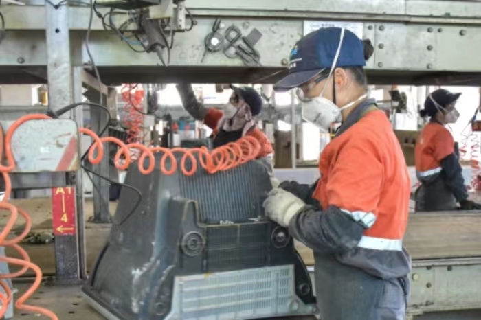 图 技术工人在流水线上拆解废弃电视机