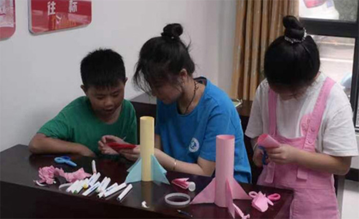 在紧接着的手工课,孩子们更是在老师的鼓励下,自己设计出了独属于自己的飞机、飞船、火箭等等,不得不说,孩子们旺盛的想象力和强大的动手能力让所有的小老师们都又惊喜又惊讶,看着孩子们满意的笑脸,我们也找到了深入社区,成为志愿者老师的真正意义。