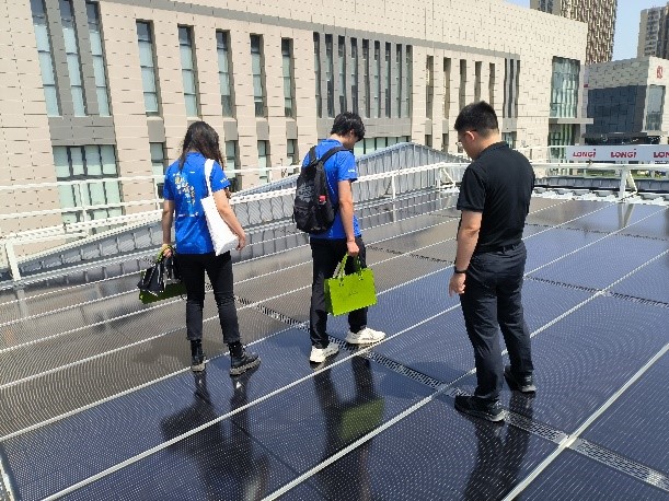 最后,队员们来到隆基BIPV体验馆,体验馆营造了完全仿真的隆顶产品应用场景,队员们通过真实模拟的工业厂房结构,在现场直观了解隆基隆顶产品的特性并真实感受了隆顶产品的可靠品质。