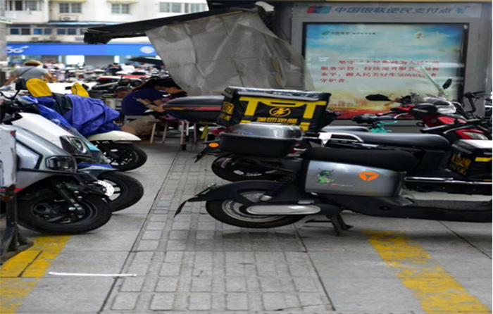 为确保盲人出行安全,社会实践成员对非法占用盲道的电动车、货物等及时进行清理,将其搬离盲道。