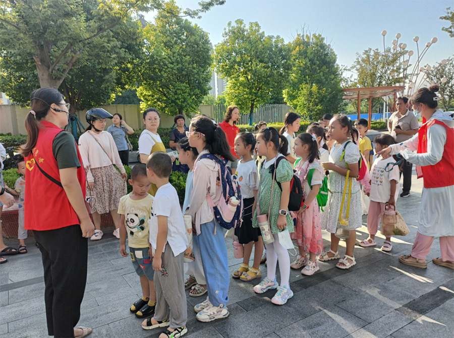 上午9:00小朋友们在家长的护送下全部到达社区活动中心,由志愿者们整好队,穿上红马甲和磨店实践社工们共同带领小朋友们搭乘大巴前往安徽省博物院,在大巴车里,小朋友们欢声笑语,大家都在期待着参观安徽省博物院。一个多小时后,顺利抵达目的地。