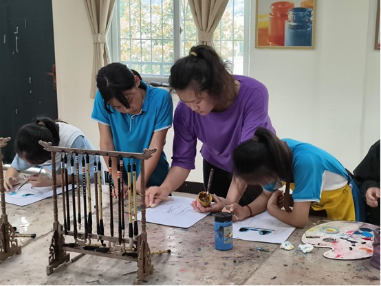 图为志愿者指导学生们进行绘画,带领学生领略艺术的魅力。通讯员 阮晨飞 摄