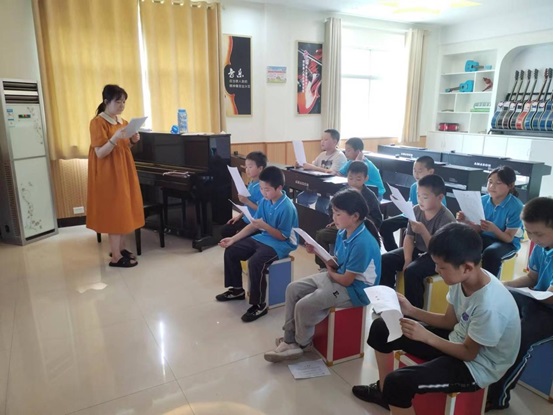 图为志愿者教唱《童年》,带领同学们感受音乐的感染力和魅力,培养孩子们的音乐素养。通讯员 曹晓洋 摄
