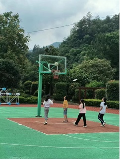 图为晚自习饭后,孩子们自发的到篮球上上锻炼身体。(廖垣樯 摄)