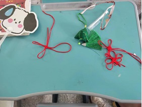手工课上孩子们认真学习志愿者们的动作,自己制作的中国结。(代宇晗 摄)