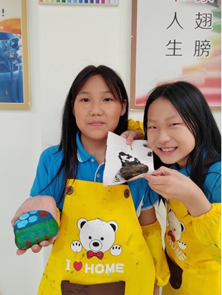 图中孩子们在手工课上积极和志愿者老师们汇报成果。(晏紫阳 摄)