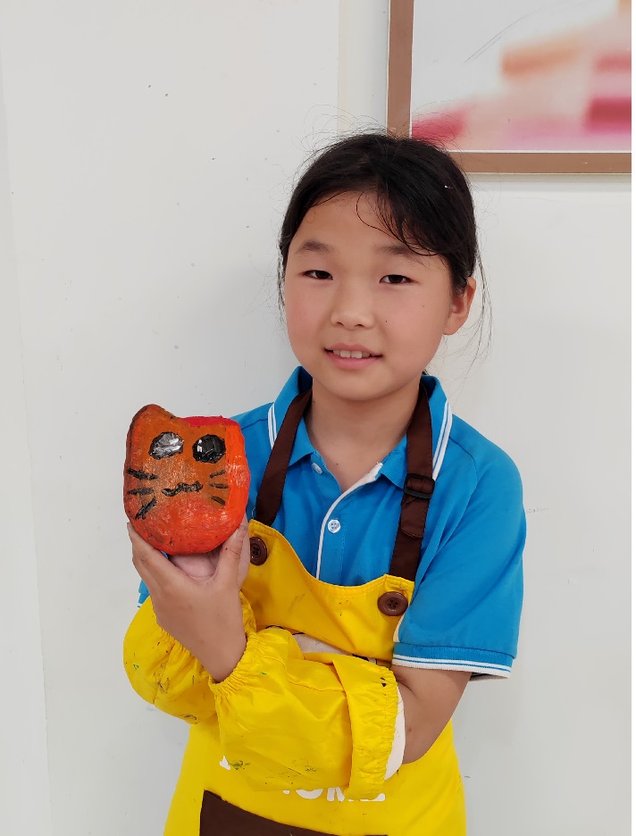 图为小朋友开心地展示自己的作品。(闵锐 摄)