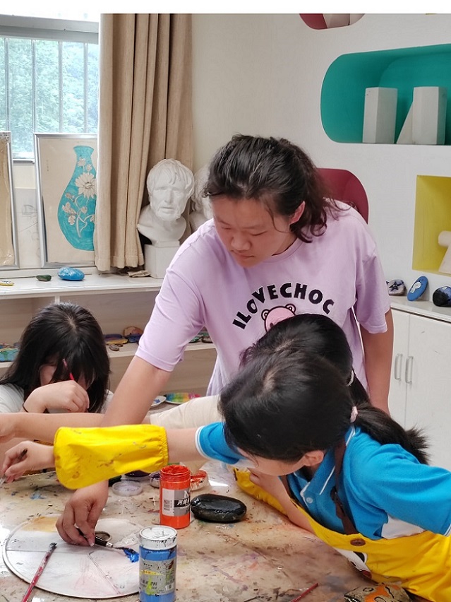 十堰8月23日电(通讯员 闵锐)为激发孩子们的创作能力和绘画潜力,以及感受美,表现美,创造美的情感,体验创作的乐趣和快乐,绘画出他们眼中丰富多彩的世界。湖北汽车工业学院山行逐梦队的志愿者们于7月3日在茅塔乡中心小学为小朋友们开展了绘画课堂,此次绘画课堂不同于以往的课堂,小朋友们在志愿者为他们捡的石头上绘画而不是在纸张上,所以不需要孩子懂得什么绘画技巧和构图方法,只需要小朋友们尽情的发挥想象,持七彩画笔,绘缤纷童年。志愿者们会教孩子们如何选色,指导孩子们描绘出他们内心的美丽风景,并培养孩子们的绘画兴趣,丰富孩子们的暑假生活。