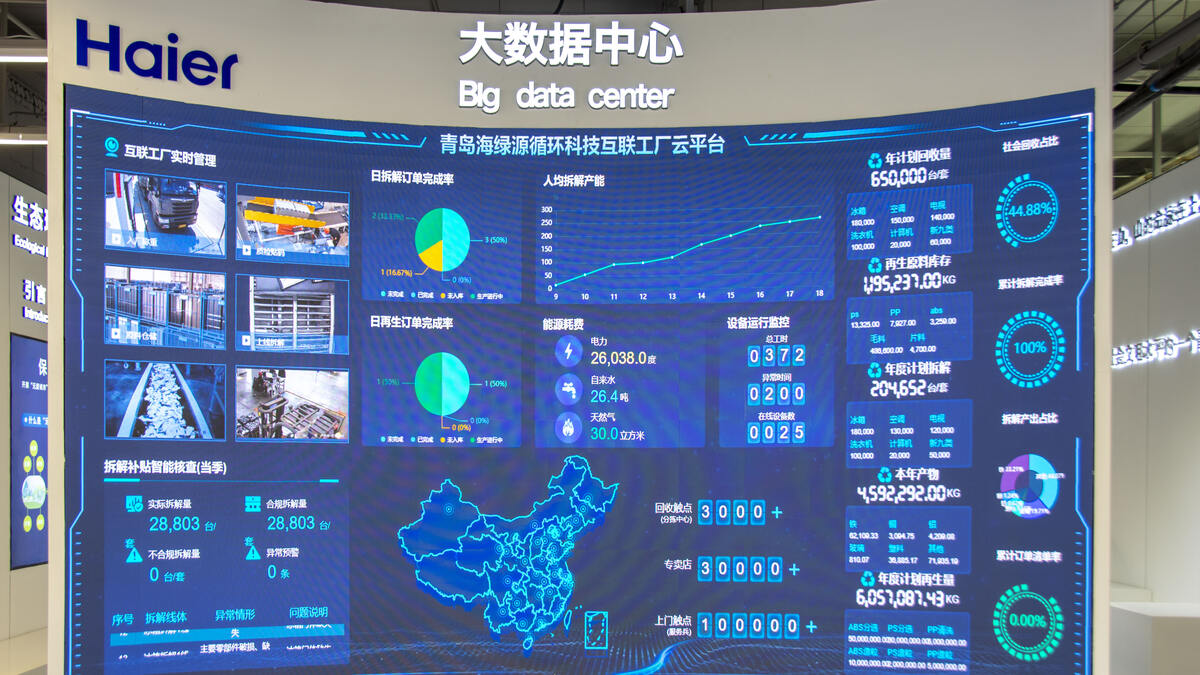 进入产业园主楼大厅,实践队队员首先观看了视频宣传片,了解海尔绿色再循环集团的发展历程,并对其绿色回收系统有了初步的了解。随后,在与相关技术人员进行交流的过程中,实践队队员们了解到其在实现双碳发展和高效运行方面做出的举措,如创建“碳中和”绿色工厂,创建互联互通区块链追溯体系等等。最后,实践队队员就企业对“双碳”目标后续发展规划问题与工作人员展开讨论并合照留念。