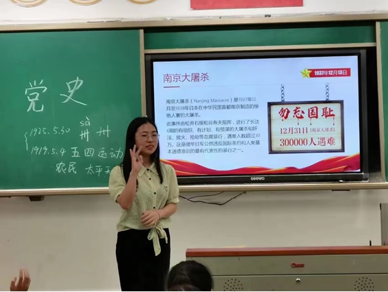图为支教老师在为同学们讲解南京大屠杀。通讯员 苏拉拉 摄
