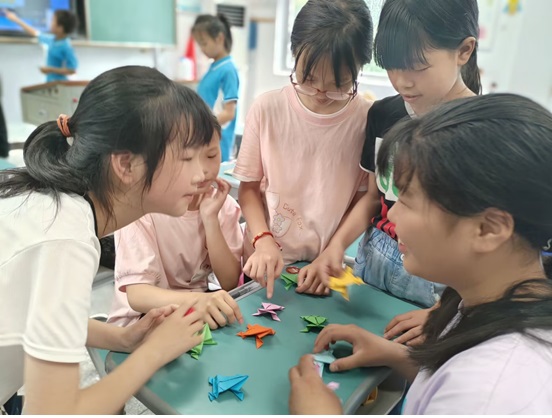 图为孩子们在分享手工课做的小青蛙。通讯员 苏拉拉