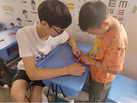 图为团队队员在教小朋友做中国结。通讯员 苏拉拉 摄