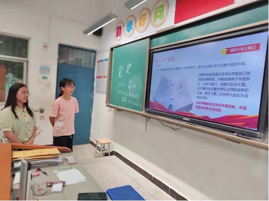 图为小朋友在听完老师情景导入后积极主动上台为大家解读“九·一八”事变。通讯员 苏拉拉 摄