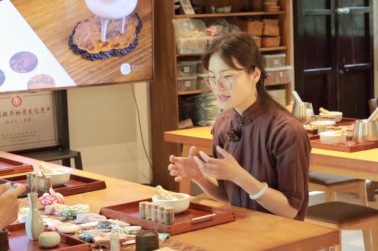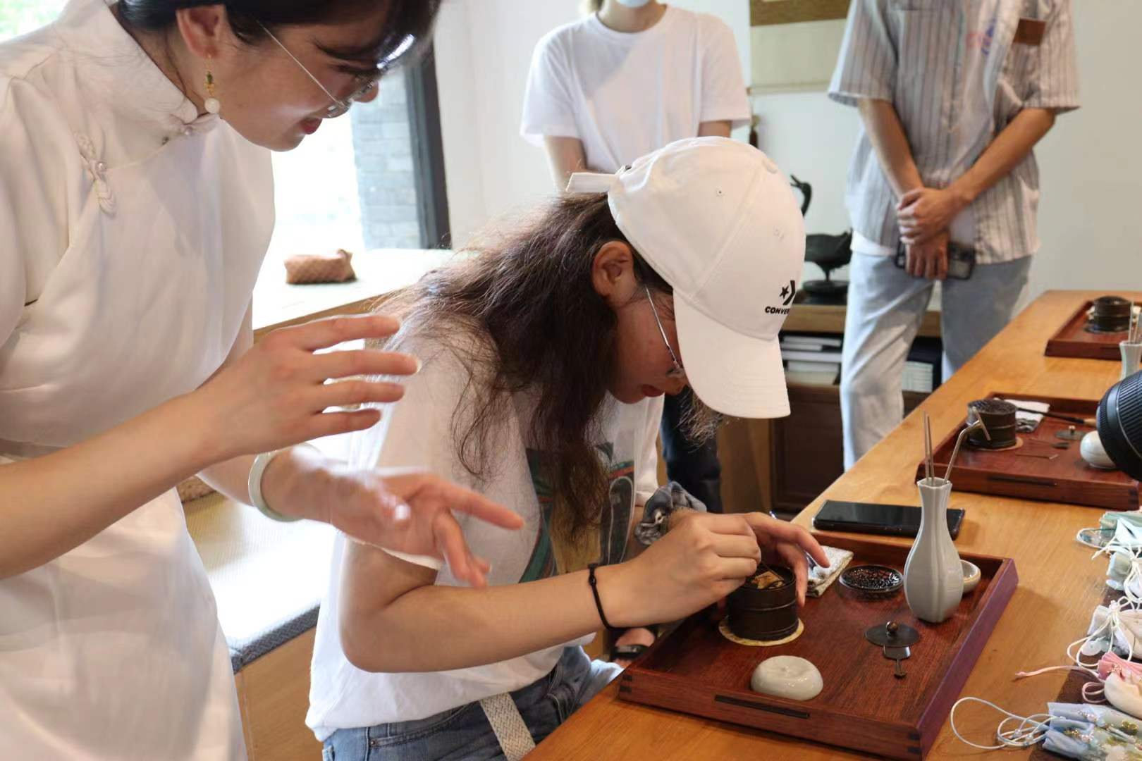 同时,团队成员还了解到,张玲是文学毕业生,虽然生在南京却非常热爱扬州古色古香的氛围,便一人来到扬州从品茶、插花开始学起。她所从事的香文化传播行业既是她的职业又是她的热爱。她希望能够把古代好的优秀的传统文化传播给更多的年轻人,而不是让文人香这一文化在当代社会得不到相应的发展。