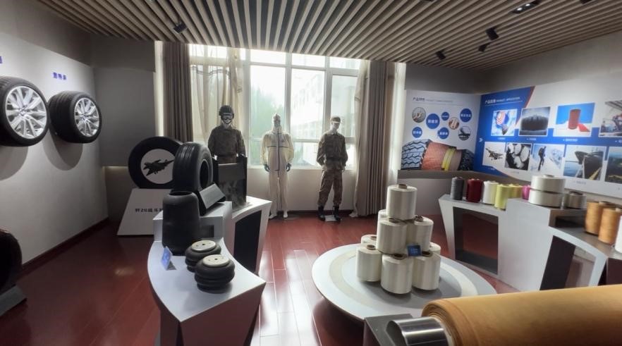 在产品展示厅,实践队员近距离感受由一颗煤炭变成的“星辰大海”。从适配不同车型的轮胎,到野外训练作战的部队行装,再到与我们生活息息相关的地毯丝等,尼龙帘子布系列产品种类十分丰富,涵盖生活中各行各业,发挥着不可替代的作用。其中在看到占据整整一面展示墙的轮胎样品时,工作人员的言语间充满骄傲与喜悦。据他透露,目前该企业已经与众多一线知名汽车制造品牌建立了长期稳定的合作关系,未来产品研发部门会继续创新,不断进步,也希望更多的产品能走出国门,走向世界。