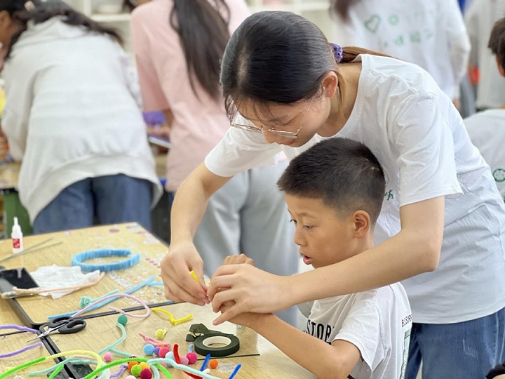 京剧是中国五大戏曲剧种之一,中国三大国粹之一,也是中国影响最大的戏曲剧种,有“国剧”之称。团队成员向同学们讲述了京剧的历史背景、剧种分类、表演特点等相关知识,让其对京剧产生浓厚的兴趣,从而促进京剧的传承和发展。之后,团队成员和同学们用扭扭棒一同创作京剧发箍,将各自对京剧的理解转化为实物,并在游戏中提升孩子们对传统文化京剧的认识。