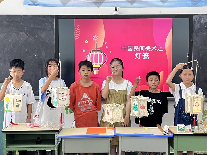 为了让同学们进一步了解中国传统文化,团队成员为同学们详细讲解了有关灯笼的知识。灯笼代表着吉祥和幸福,是历史的长夜之眼,承载着人们的希望和祝愿。同学们利用各种材料装饰灯笼,如彩纸、绘画、贴纸等,寄予着他们心中的美好愿望。每个小组制作出的灯笼各具特色,为充分展示同学们的才能,增强他们的自信心,团队成员邀请每个小组的代表上台展示了小组作品。