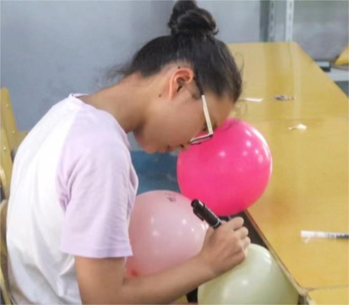 (图为儿童在气球上写上烦恼,放上天空)