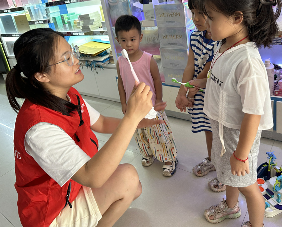 为深入学习贯彻党的二十大精神,守护人民生命健康,进一步提开人民群众的口腔健康素养水平,树立“每个人是自己健康第一责任人”的理念,促形成良好的口腔健康行为。8月26日—8月29日口腔医学院王如梦同学在亳州市谯城区六集附近的各大超市同小朋友做“七彩假期”专项活动,向小朋友们进行口腔知识宣讲。