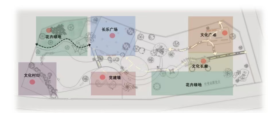 设计中实践队员们以“保护、微调、文化、人性化、可持续”的规划设计为主题“保护”即保护现有成形成规模的树林、及当地污染的溪,维护现有的整体树林布局、地貌,不做大的改动。“微调”,在保护的基础上对现有的树木进行疏伐、加植同时对小溪进行去污。“文化”深化当地建库精神,及弘扬二十大精神。“人性化”,设计了一条贯通小溪的座椅,供当地人休息,以及设计娱乐设施供游客玩耍,包括种植花卉供人观赏。“可持续”发展当地自然资源,实现人与自然的和谐共处,设计队员们将场地布置分成五个区域进行设计以“鱼”主题融入设计之中。