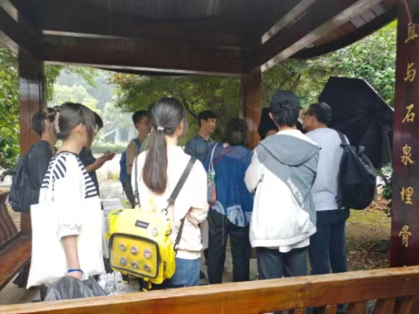 村书记为实践队介绍长潭村的特色活动和长潭水库的建设为乡村留下的长潭精神”为国家而舍小家的顾全大局精神,以及积极进取、辛勤劳动的艰苦创业精神“,应长潭水库的地理优势具有丰富的水产品。边聊边走来到调研地点,位于长潭村口建设工程有一定的基础有许多的绿植等,村书记的需求是想改造设计的更加完善、美观、有特点,大概看完实践队员们与指导老师们开始激烈的讨论,各自说着自己的有趣的想法。
