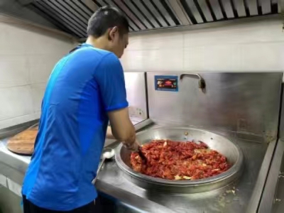 下午16:40,放学的铃声敲响,孩子们排好队伍从校门口鱼贯而出。队员们受李校长的邀请,从拔虾线、刷龙虾开始处理小龙虾,最后由李校长亲自掌勺。队员们和双溪口小学的老师们共享了一顿龙虾大餐。