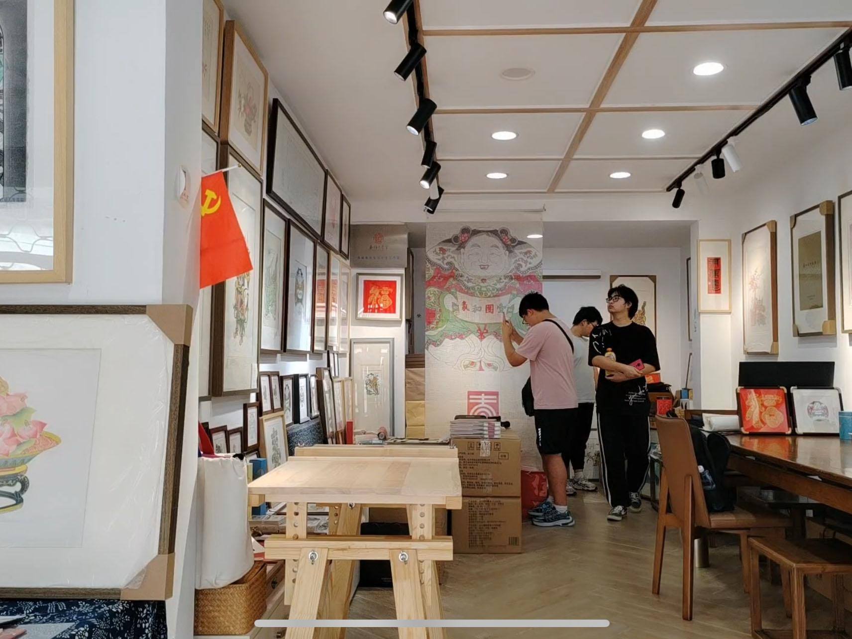 进入工作室,团队成员的视线立马被眼前琳琅满目的精致年画所吸引。工作室内摆满了题材各样的年画作品,精细的线条和鲜艳的颜色让人赞叹不已。据工匠介绍,这些年画的原版有的是已有上百年的历史的经典之作,有些则是融合现代时髦元素的创新之作。传统与新潮在此刻交相辉映,将古老的木刻年画推向新的高度。