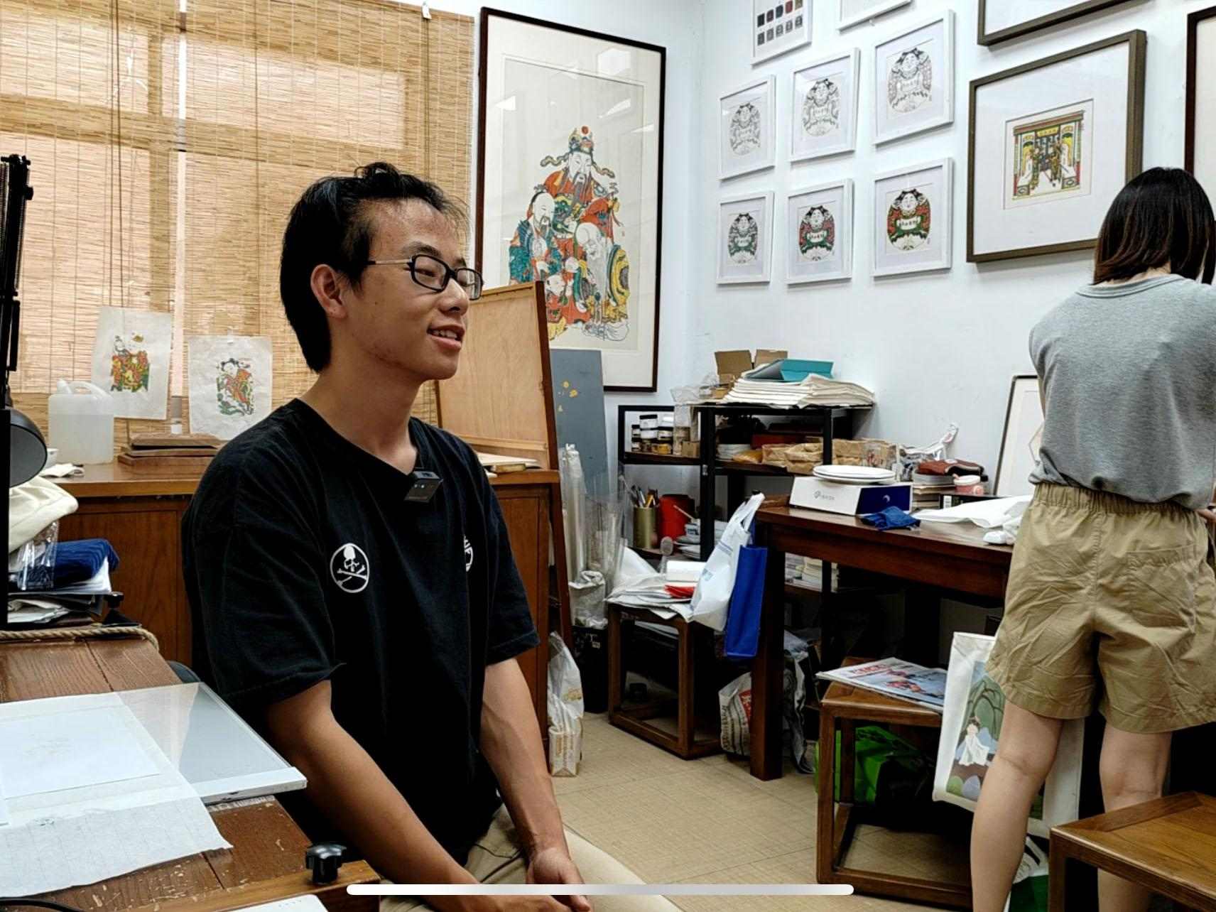 苏州木刻年画以它的内容丰富、色彩鲜艳、线条精细、构图严谨等特点而闻名于世。它不仅是一种艺术形式,更是中国文化的重要组成部分,具有重要的历史、文化和艺术价值。2023年7月24日,苏州大学电子信息学院“刻木迎年”实践团来到了“荞麦工作室”,参观并感悟传统木刻年画在当下的传承与创新。