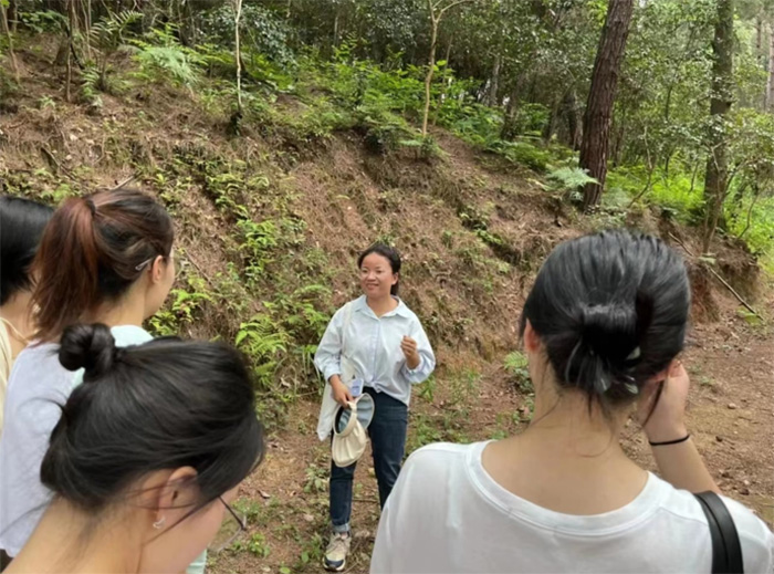 活动首站,在林场工作人员的带领下实践团来到了登高云山森林公园的森林保育区,在这里,调研团队对林下经济、苗圃的无纺布种植技术和阔叶林改造技术进行了深入的学习。
