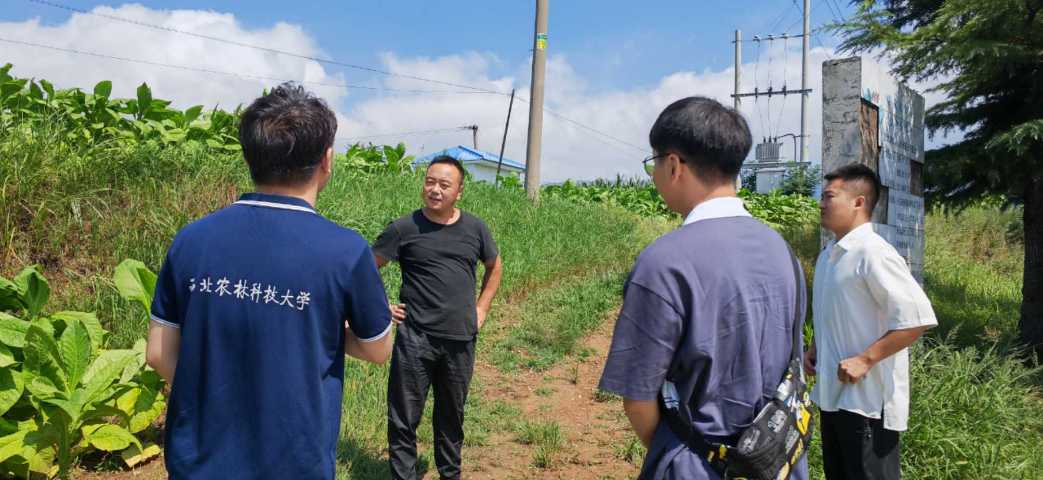 第三天,团队深入垣曲县乡镇,前往农业种类丰富的英言镇。英言镇地处垣曲县东南部,东西部为丘陵,水土流失严重,土质较黏重,适宜种植小麦、玉米、棉花、烟叶等。作为纯农业乡镇,英言镇农业种植范围广,其中尤以木耳培育增收致富。在镇政府,团队成员采访到了人大副主席、副镇长及农科站站长,团队负责人杨宇喆向政府行政人员介绍了杨凌示范区以农高会为例的各大农业盛会,推荐镇上种植大户参会交流,提前交涉了后续团队的进一步实践调研,提出并讲解了团队正在筹划的农科推广新模式。这一模式受到了政府的欢迎,表示可先将农业推广试用于种植大户实践,政府愿进行全乡镇的推广。其后,在农科站长的带领下,团队成员走访了英言镇的烟草等作物种植户,倾听农民声音,了解民需民情。