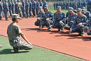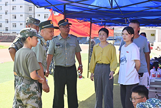 为了考察新生们军训状况,保卫处处长沈智祥来到了军训场地,辅导员周姣术和余晓铃向其介绍了新生们军训情况。看见新生们坚毅的眼神和挺拔的身躯,沈智祥表示赞许。