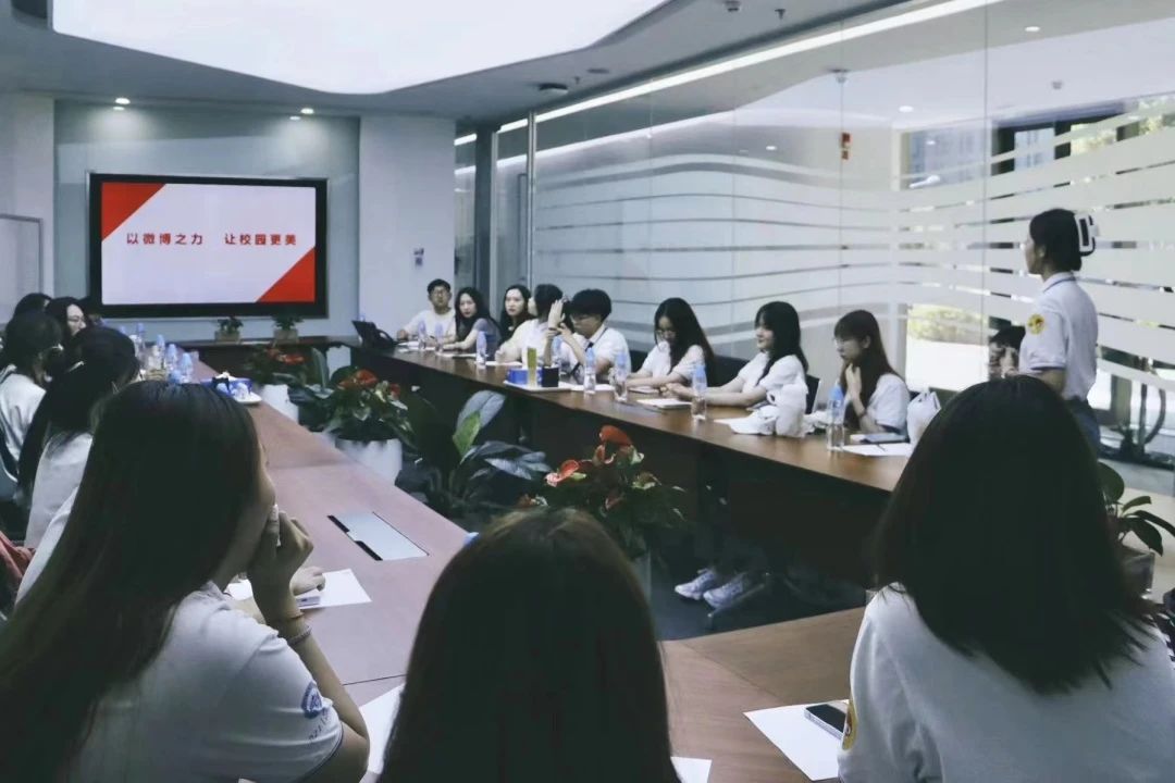 参观完员工区后,实践队成员与新浪校园工作人员进行面对面交流。在交流座谈会上,新浪校园强调“以微薄之力,让校园更美”。新浪微博全面讲述了“横到边,纵到底,全覆盖”的校园微博体系,其中包括微博校园账号矩阵、微博曝光资源、微博人才培养等。同时,微博校园工作人员介绍了新浪联合各大高校开展的各项线上线下项目活动,如“留学生春节实录”“绿植领养活动”,开设“高考护航行动”活动,联合央视频、中国大学生在线发起的“就业护航活动”。微博校园工作人员还向我们展示了微博与武汉大学校园文化宣传的合作,微博校园与武大微博的小伙伴们共同努力,在过去一年中霸榜微博热搜榜,创造了包括#武汉大学2023樱花季# #武汉大学2023年毕业典礼#等热搜第一词条。同时,微博也为同学们展现了在校园内容安全与舆情应对等方面所作出的成果,构建完整的校园网络舆情,制定详细舆论解决方案,实施校园超话舆情应对,为各大高校微博发展提供保障与动力。