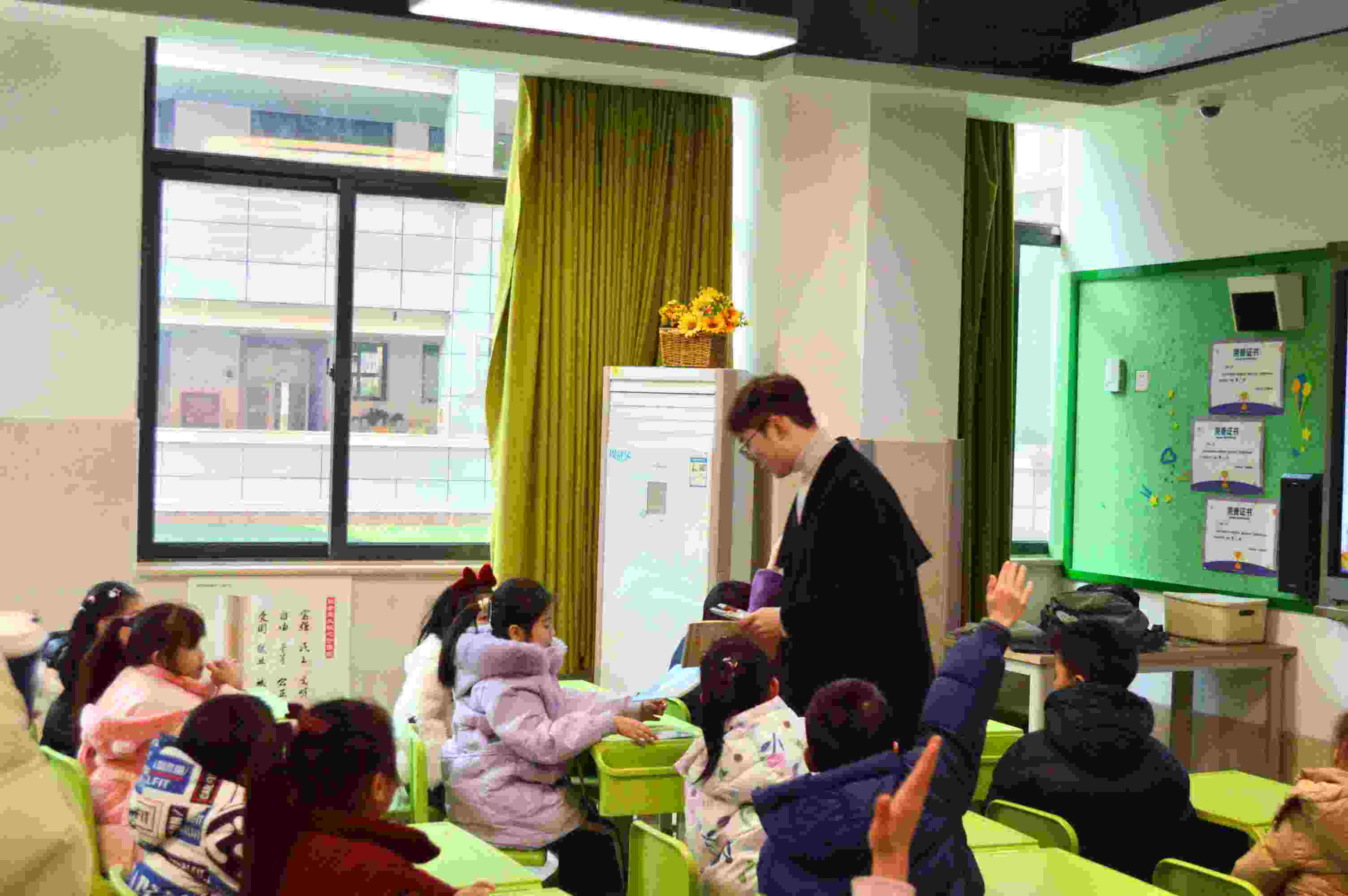 图为何金城与学生开展有奖问答 伍诗涵供图