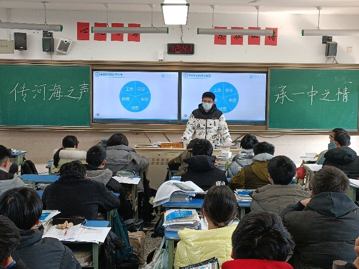 2024年1月26日,河海大学“传河海之声,承一中之情”返校宣讲实践团走进江苏省苏州第一中学校。三位团队成员都毕业自同一班级,团队负责人刘翔宇提前和班主任黄丽霞老师联系,来到了现今她管理的高三2班。黄丽霞老师先对团队成员表示了欢迎。
