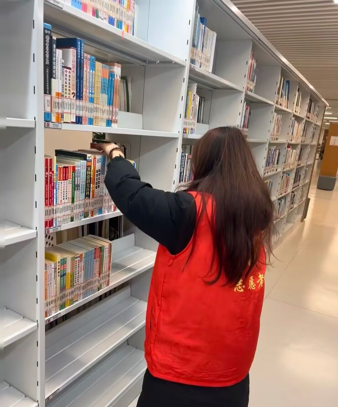 在进行社区清扫工作后,星火接力队马不停蹄的开展下一项实践活动。队员们在社区主任的带领下,来到社区的图书馆。由于社区工作人员有限,图书馆内图书有时候不能及时得到处理,给在此阅读的社区居民带去了困扰。正值寒假,社区图书馆内有很多在此阅读的老人以及来进行学习的学生们。在对图书馆情况进行了解后,队员们轻声分配完工作,轻手轻脚的开展工作。首先,队员们关注到社区图书馆的环境问题。他们组织了一次清扫活动,投入到图书馆的整理和清理工作中。他们用扫把和拖把打扫地面,擦拭书架和桌面,使整个图书馆焕然一新。