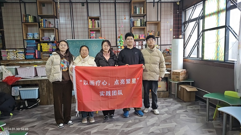 Figure 4图为实践队线下服务活动成员合影。山东大学生命科学学院"以画疗心,拨云开雾" 公益实践团队通讯员 李薇 摄。