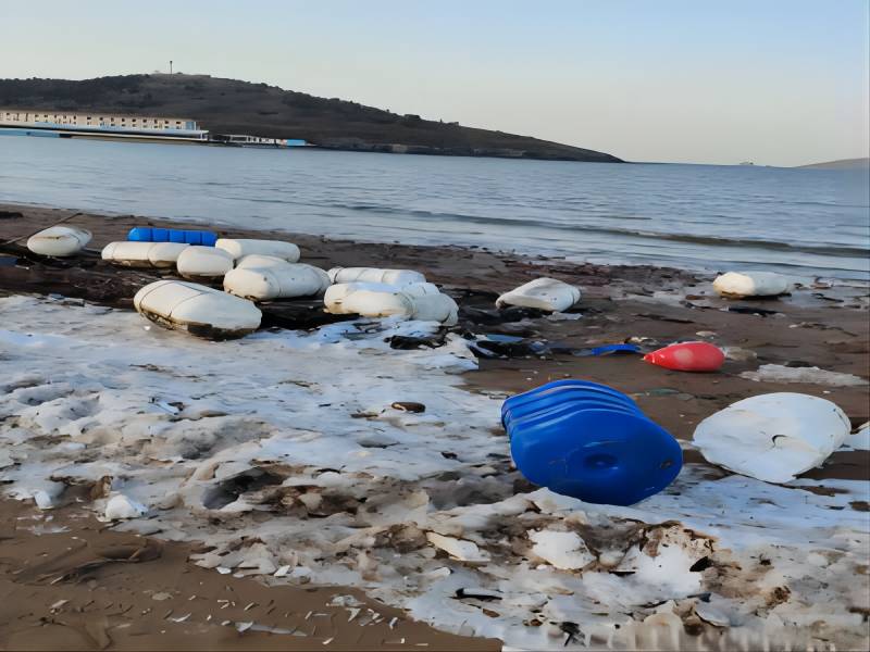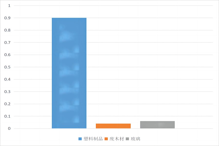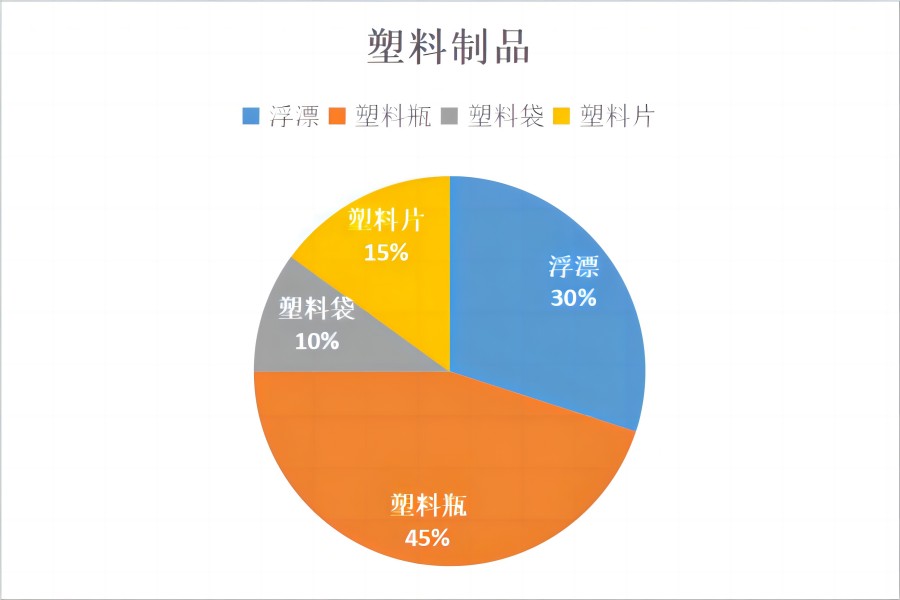 随后,调研团成员转至大连市大黑石海域进行实地调研。相较于星海广场,该海域沙滩上的垃圾密度明显增大,塑料制品占据主导地位,约占总量的90%。这些塑料垃圾包括塑料矿泉水瓶、塑料袋、塑料片以及浮漂等。此外,团队成员还发现了一些较为陌生的垃圾类型,与海边工作人员沟通得知,大黑石海域进行海参养殖,因此沙滩上的塑料片、大量塑料桶以及大量麻绳均是养殖过程中产生的废弃物。具体垃圾统计如下: