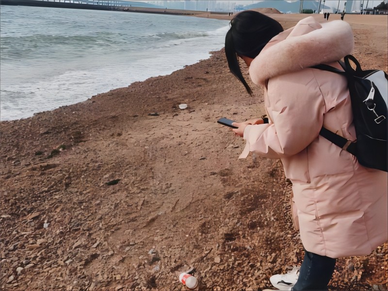 同时,团队成员还采访了海滩周边居民和参与清理工作的志愿者(因受访者不愿露面,本次采访仅以文字形式记录)。受访者是一位冬泳爱好者,长期居住在大连,他表示自己经常来星海这片海域进行运动,对沙滩上的垃圾情况有一定了解。据他描述,沙滩整体较为干净,垃圾问题并不严重。星海湾区域有组织定期清理沙滩,主要采用人工清理的方式,目前尚未使用机器替代。他认为,如果未来能够实现机器代替人工清理沙滩,将极大地提高工作效率,并期待相关技术能够得到广泛应用。在采访结束后,团队成员在沙滩边发现了一包已经打包好的垃圾,经过询问得知,这些垃圾会在晚上统一运送至垃圾场,整个处理过程均由人工完成。