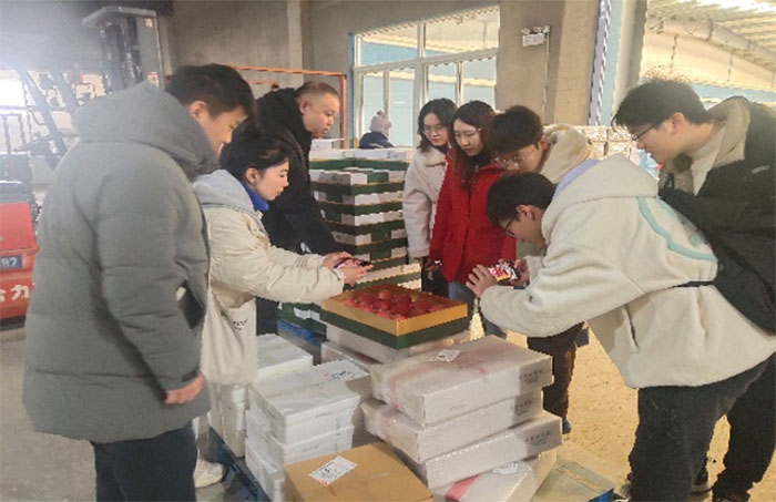 “苹果的分选速度能达到每小时2000公斤。通过大小、重量、红外线检测探伤等一套工序进行分流,最后人工手动包装”,参观期间博士达集团行政副总王浩东向队员们详细介绍了企业的苹果分选装置。实践团队山东籍同学赵京瑞表示,在本次参观中,我学习到了苹果产业全过程,从前期的采摘运输,到中间的加工、分流,再到后期的食品处理和冷藏、销售等,每个环节都做到了规范严谨,希望今后结合自己的专业知识为包括苹果产业在内的乡村食品行业贡献自己的力量。