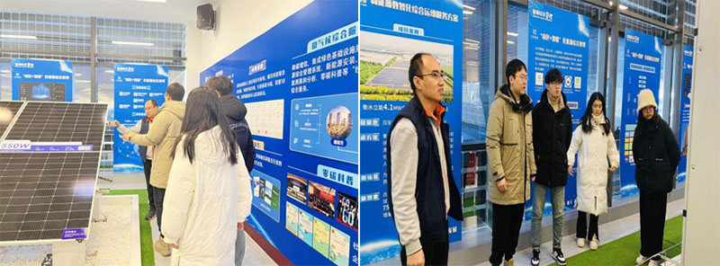 在实验室的示范项目介绍展板前,实践团队详细了解了英利集团在落实双碳战略方面的重要成果。特别是雄安高铁站的项目,作为亚洲最大的高铁枢纽站,其站顶铺设有4.2万平方米的光伏组件,采用光伏建筑一体化设计,有效节约电能30%,每年可减少二氧化碳排放4500吨。这一项目不仅展示了光伏技术的实际应用效果,也体现了低碳环保的建筑设计理念。