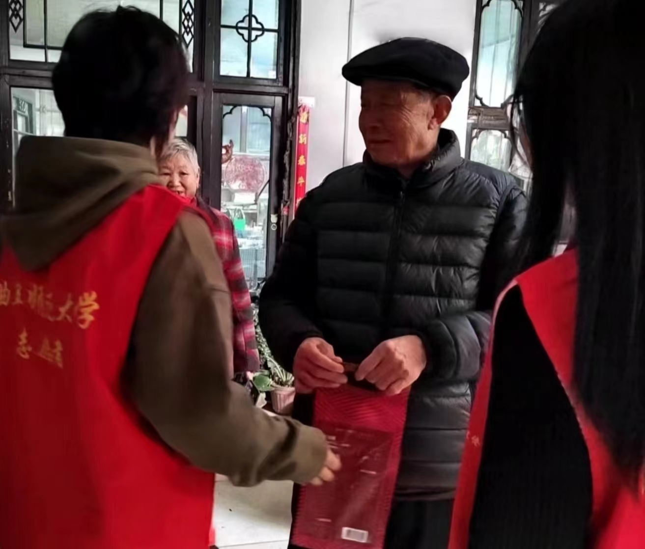 本实践队以学习贯彻党的二十大精神为主要内容,旨在引导和激励广大青年积极投身社会实践,为实现中华民族伟大复兴的中国梦贡献青春力量。在奎文社区党支部干部的带领下,实践队员们来到第一位老党员家中,与爷爷促膝长谈,并送上新年贺礼。
