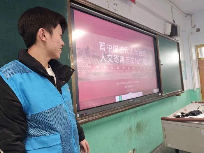 点梦之色彩,画国之未来,中华民族拥有五千多年的悠久历史,无论哪一领域都颇有建树,其文化底蕴可见一斑。为加强青少年思想引领,提升其对传统文化感知力,丰富青少年的文化生活,2月17日,聊城大学建筑工程学院毅远志愿服务队前往日照莒县四中开展“中国历代绘画大系”宣讲活动。