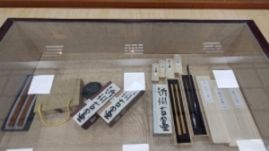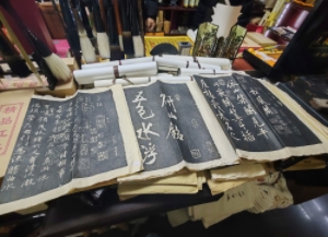 一来到这里,实践队员就被浓厚的书法氛围所震撼,随处可见的书法石碑,展览柜里数不胜数的大家之作,飘如游云,矫若游龙。经过古色古香的园林建筑,实践队员来到了晋墨坊。晋墨坊是张兰波先生为推广非遗琅琊古墨,让更多人体验其独特之处所创立的。传承人将琅琊古墨的非遗文化与时代相结合,走上了市场化、产业化发展的道路。晋墨坊琳琅满目的古墨产品、浓郁醇厚的古墨气息让实践队员近距离感受了其中蕴含的魅力。传承人立志要将古墨工艺发扬光大,在研究明清两代古墨配方的同时不断推陈出新,加入了高科技技艺和现代工艺,结合当代书写特点,相继开发出沂州古墨、云中燕墨锭、北太墨汁等产品。不仅在全国热销,还远销至马来西亚、日本、韩国等国家。适应了时代发展的琅琊古墨,焕发出了全新的光彩。