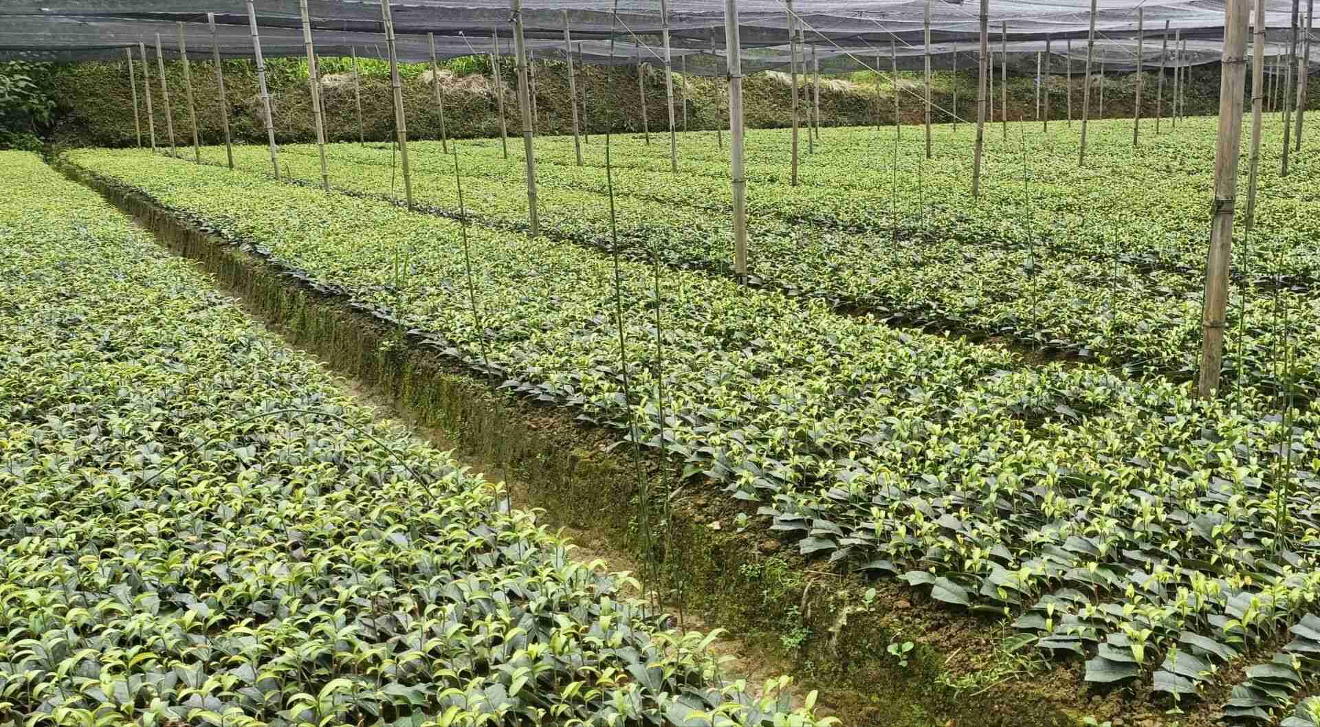 1月11日上午,团队成员前往三江侗族自治县八江镇布央村美地屯茶苗培育基地,了解三江茶的育苗工作。在这里,团队了解到茶树的生长周期主要分为幼苗期、幼龄期、成年期、衰老期四个时期。而从茶苗到可以移植的茶树大概需要3~4个月的生长时间。据负责人的讲解,三江本地茶育苗,有整地、挖沟、盖地膜、遮阳网、购本地茶穗条、剪有芽的短枝条、称重、扦插、淋水等一系列环节。这些环节对于茶苗的生长具有很大的帮助作用,为提高产量做出了重要贡献。下午,团队成员来到布央仙人山茶园,目前茶园面积3600余亩,连片的“仙人山”千亩生态茶园作为三江县侗茶产业的发源地,有“千亩茶园好风光,浓郁茶香飘四方”的美称。