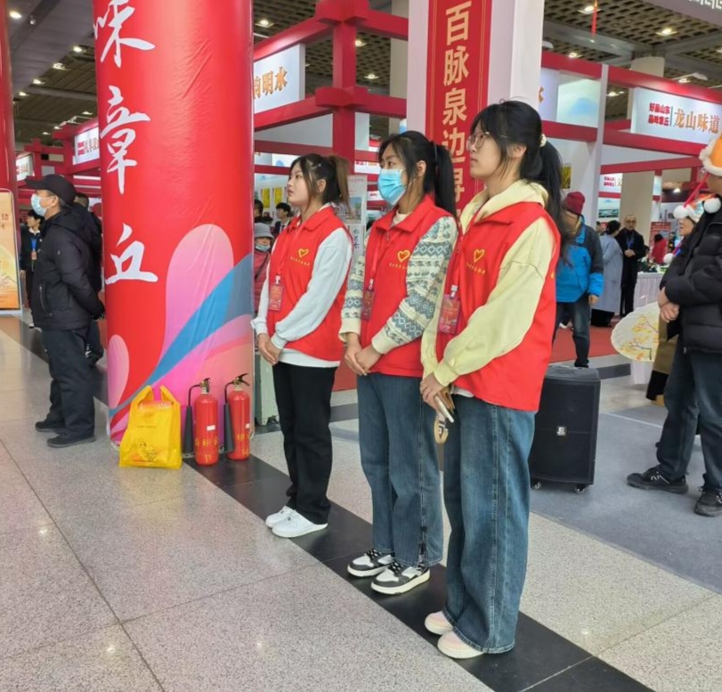 图为实践队员在社区农产品展会中担任志愿者。中国青年网通讯员 李天昊 摄
