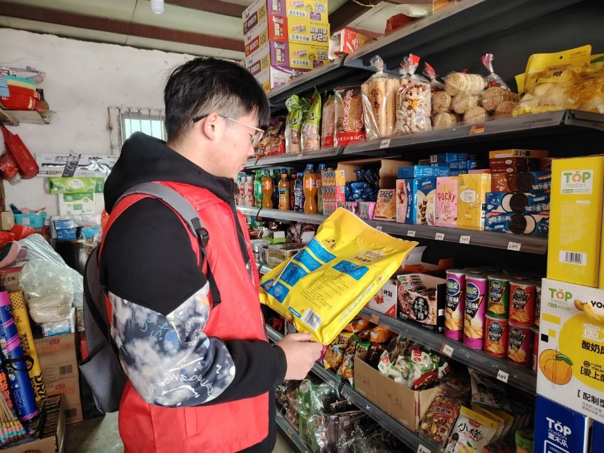 为进一步推进秋冬季节食品安全“两个责任”的有效落实,实践队员前往村内各个超市以及养老院食堂进行调查,严格检查经营场所的食品经营许可证和从业人员健康证等证件的持有情况,并对室内环境卫生是否达标,是否存在售卖三无、过期、变质食品等情况进行了仔细检查,同时对从业人员加强了食品安全知识的宣传。