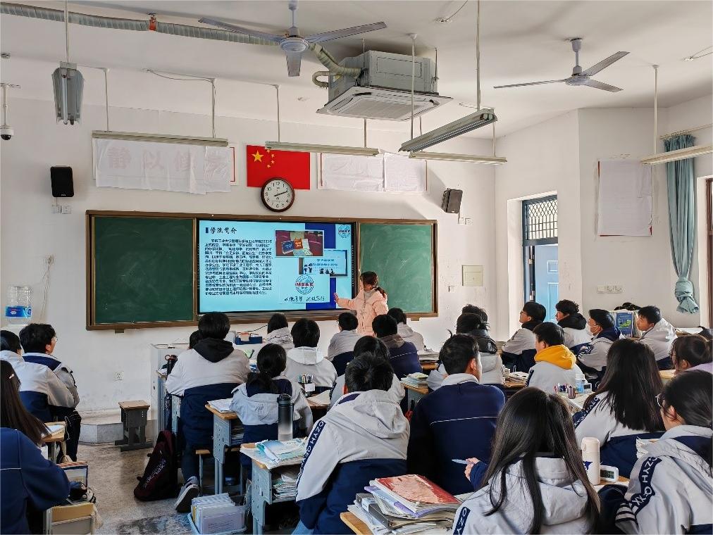 1月28日下午,实践队抵达安徽省霍山中学,开展了招生宣传主题宣讲。队员石青瑶介绍了管理科学与工程学院的办学历程、开设专业及科研成果等内容,强调了学院学生活动有特色、人才培养质量高、就业升学成绩佳等优势。她结合一年多的大学生活,讲述了参与学院青春故事汇、志愿活动、学科竞赛、微党课等实践活动的感受和体悟,说道:“管工学院坚持以生为本,在学生的知识获得、能力提升方面全心倾注,在这里我感受到了温暖与归属”。