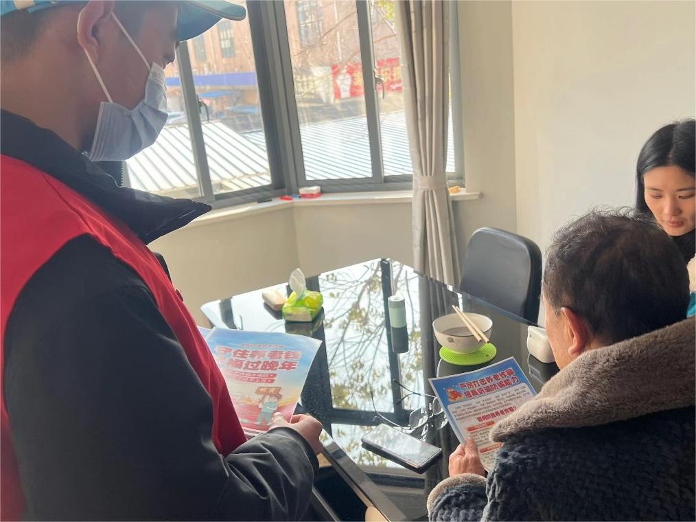 同时志愿者们向社区老人们发放防范诈骗宣传资料、宣讲常见的诈骗类型与手段,提高老人们防范诈骗的意识,增强识骗防骗的能力,帮助老人守好养老财产安全。