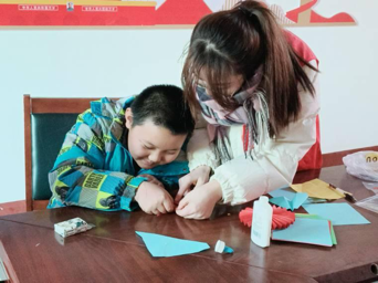 民族团结是中华民族共同体意识的主要目标,为充分展现团结协作这一精神风貌,志愿者通过“折纸+绘画”的方式与孩子们展现民族团结的精神风貌,双方互帮互助,过程出现失误时,无论是谁都及时进行弥补修改,最终共同合作出一幅幅生动作品。这让孩子们切身感受到团结友爱、互助进步精神的伟大力量,见民族团结深深地嵌入孩子们的内心深处。